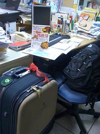 (下圖是,敏慧交接做到上飛機前四個小時,桌旁是她的行李)